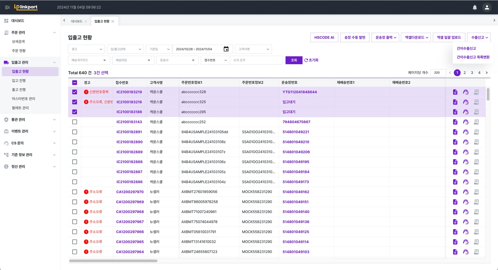 셀러도 수출신고한 자신의 주문을 확인할 수 있습니다.