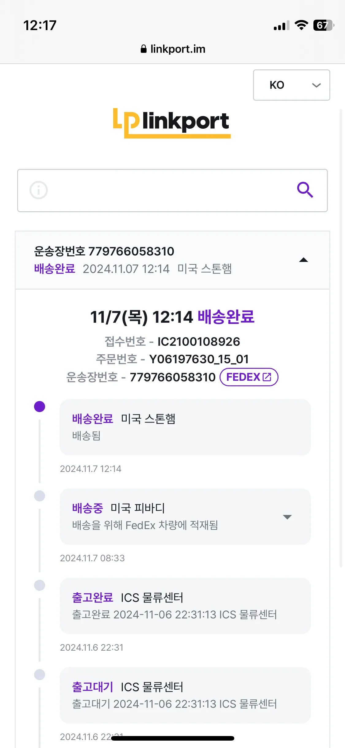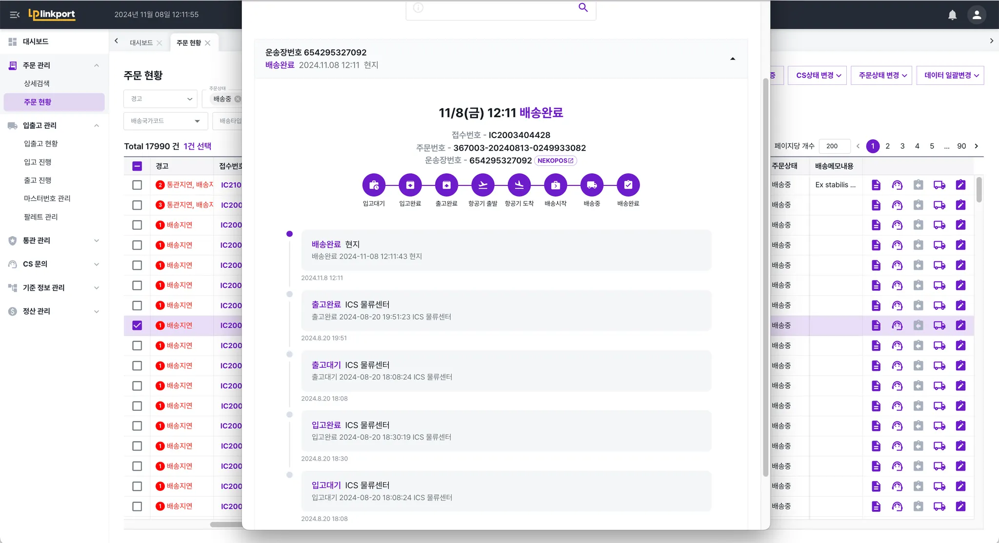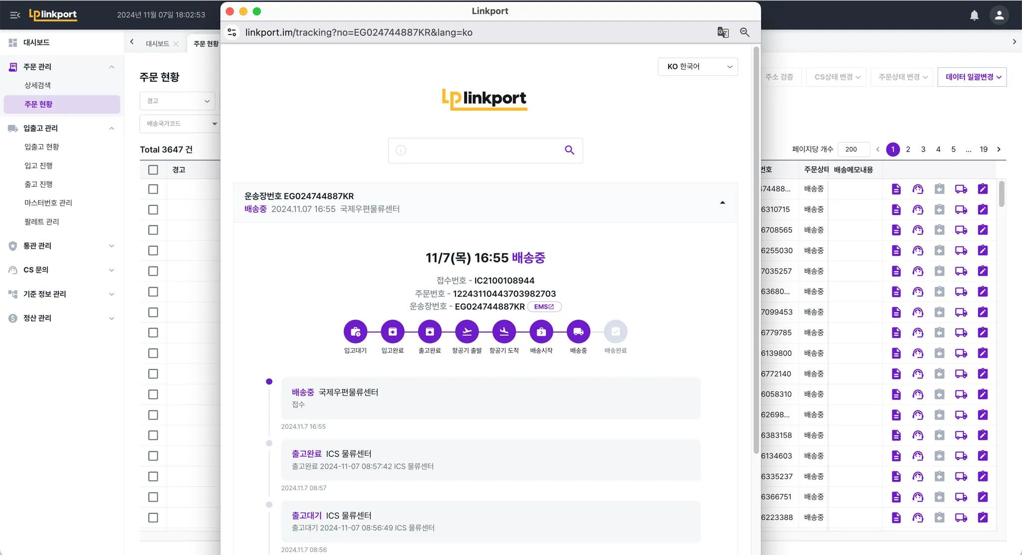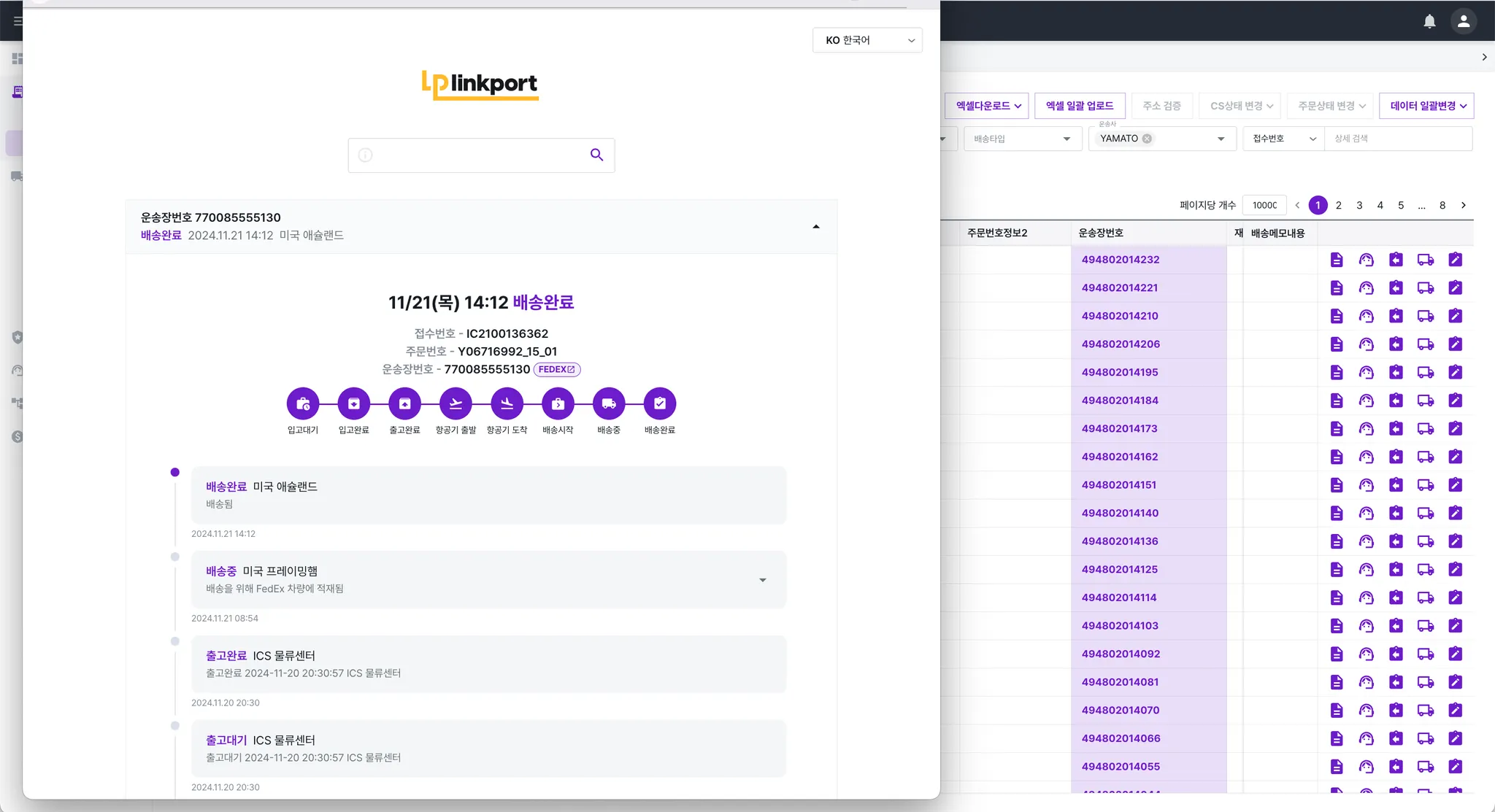 출고완료 시점 이후에 트래킹 번호를 입력한 경우에는 강제 트래킹이 필요하여 링크포트에 요청 필요