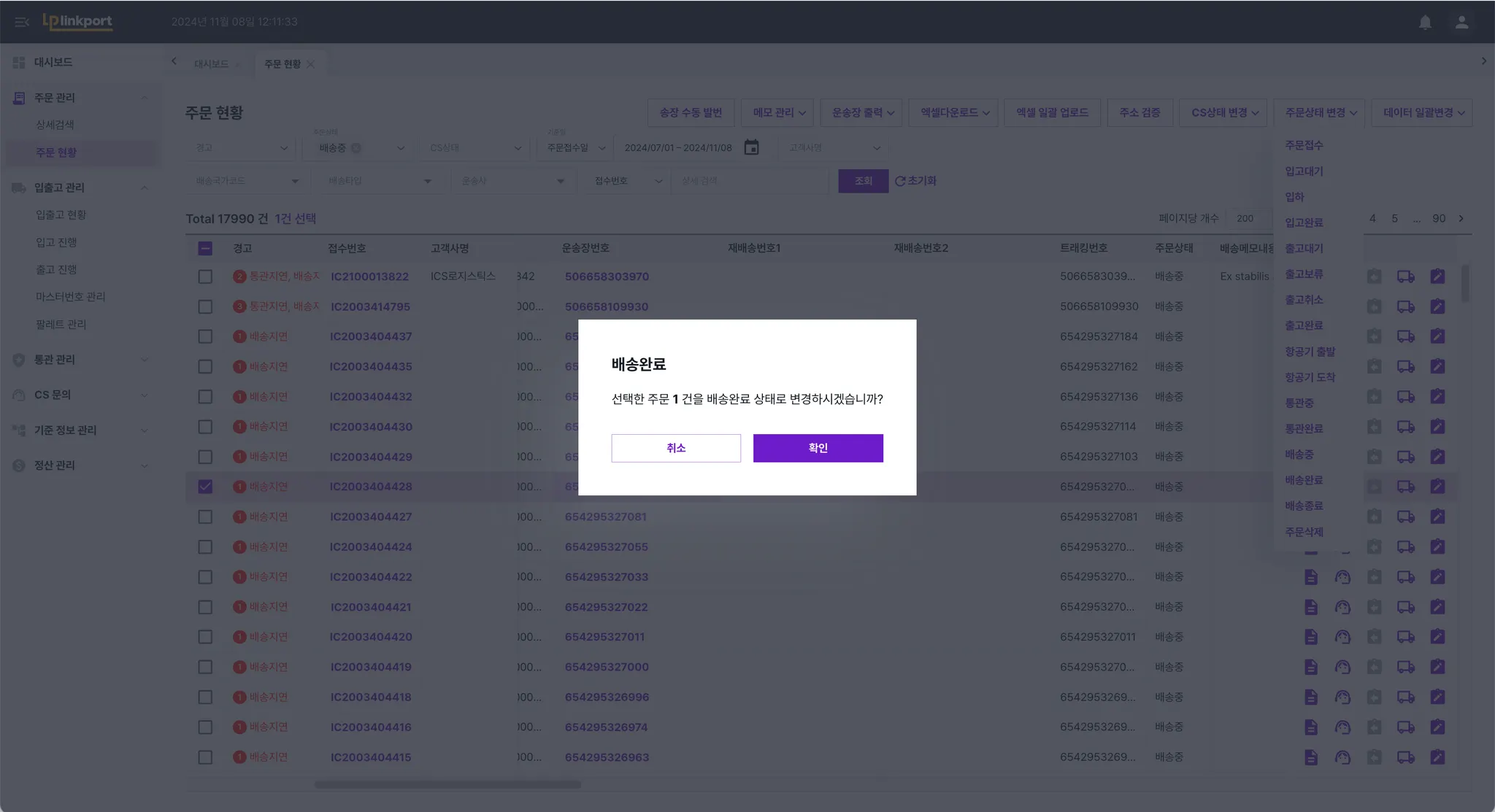 출고완료 시점에 운송장번호 유무를 체크해서 없으면 출고완료 처리가 안됨