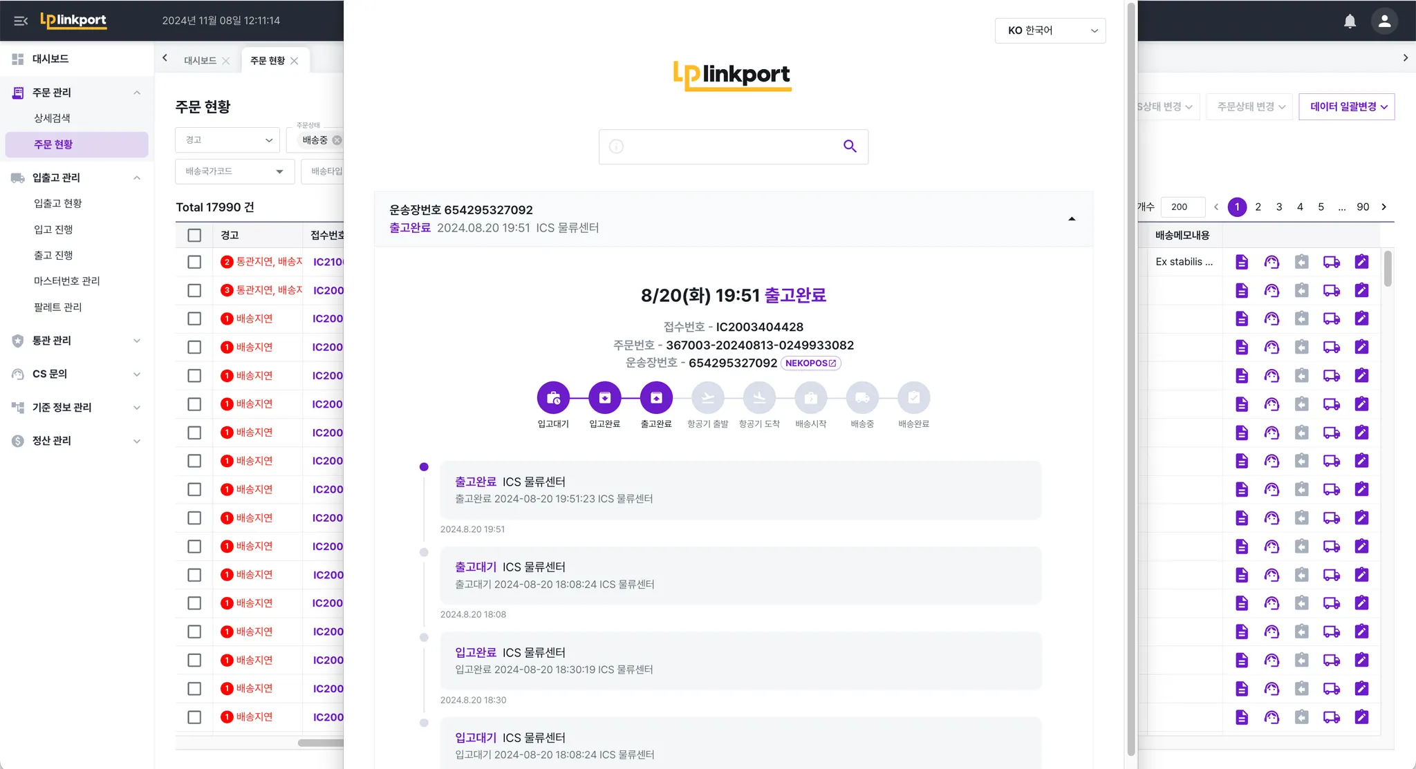 트래킹페이지는 주문상태 입고대기 시점부터 확인 가능