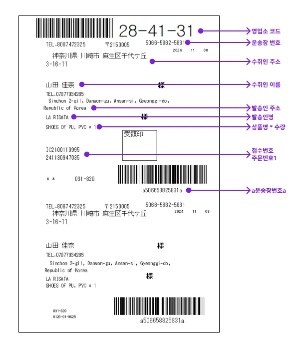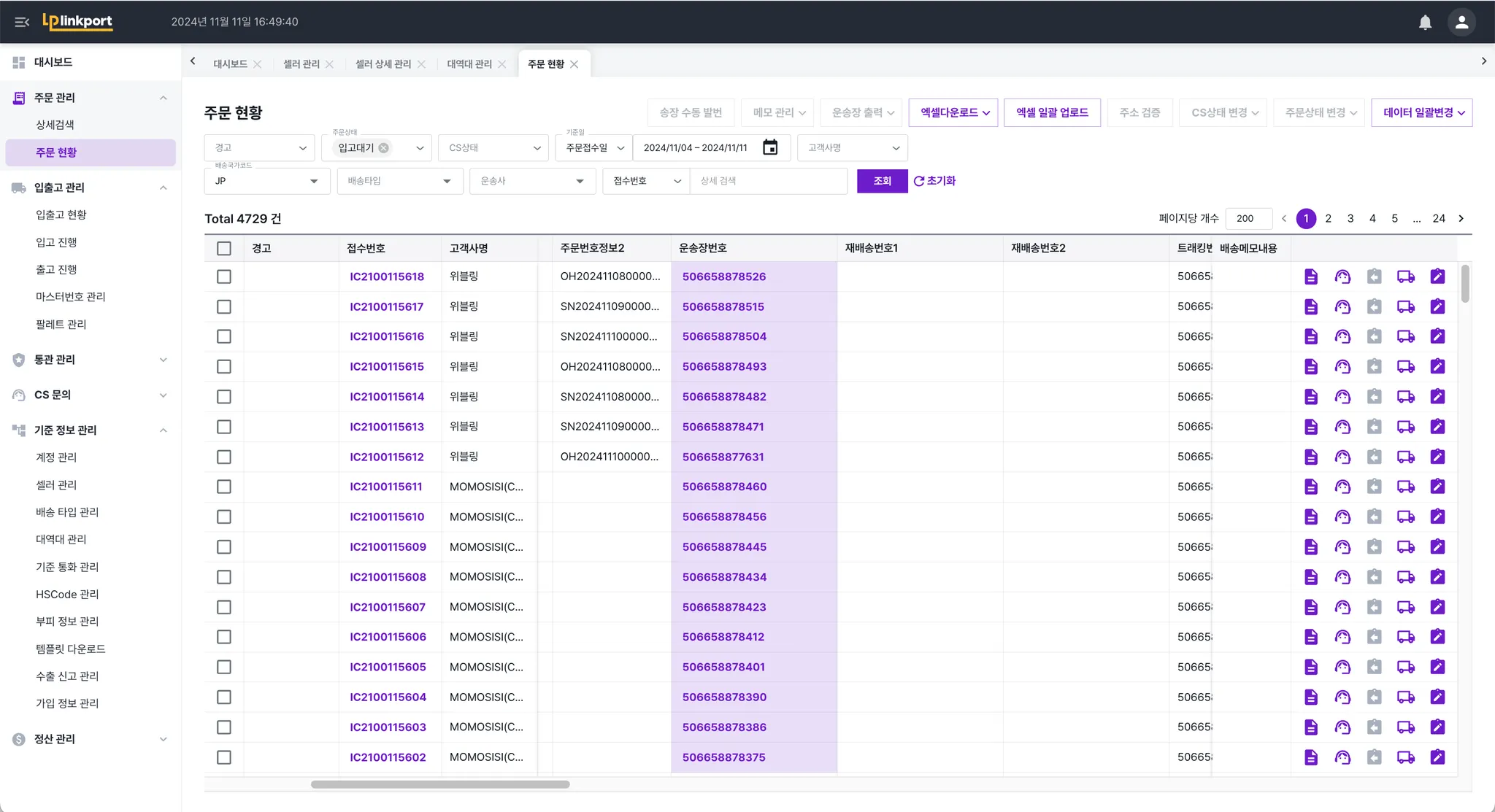 입고대기 이후 상태의 주문부터 정상적인 운송장 확인이 가능하며 간혹 일본 주소 관련 오류로 시와케 코드가 없는 현상이 발생하는 경우가 있습니다. 이런 경우엔 링크포트로 연락주시면 됩니다.