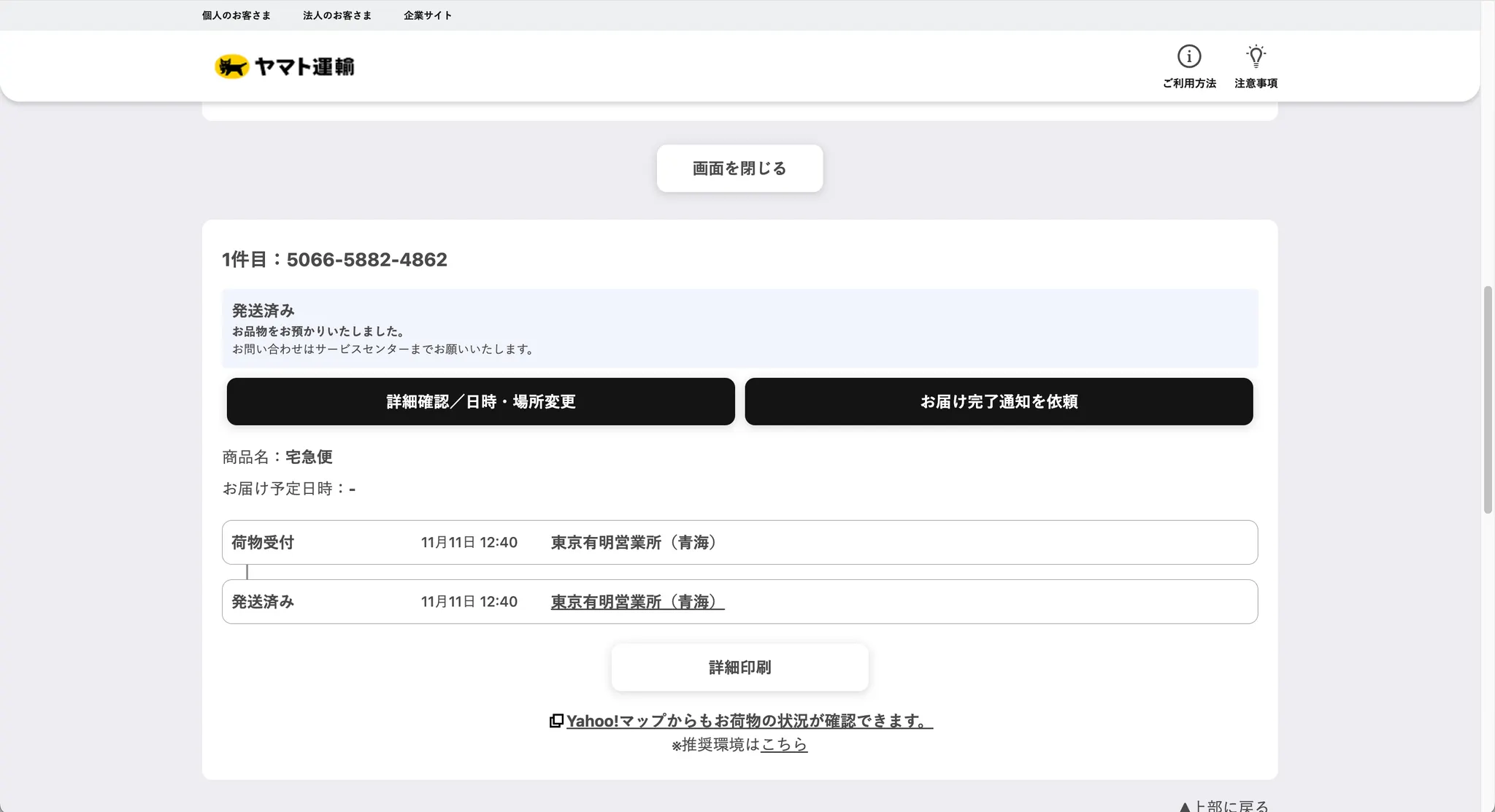 야마토는 API연동이 아닌 야마토 배송추적페이지를 크롤링(홈페이지에 노출된 정보를 가져오는) 방식입니다.