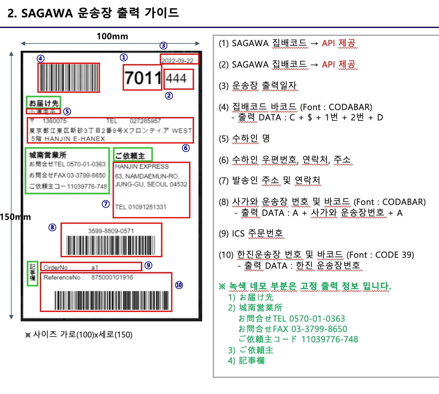 주문 접수 시점에 우편번호 기반으로 사가와 마스트팩에서 영업소코드, 지역코드를 찾습니다.