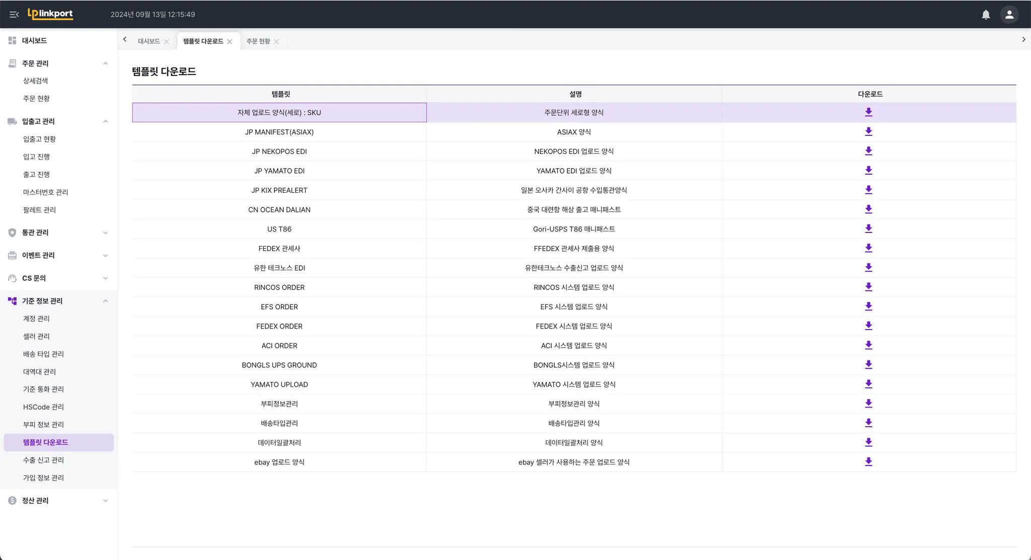 템플릿 다운로드 - 자체 업로드 양식(세로) : SKU