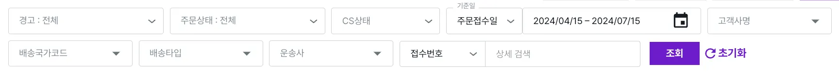 조건은 주문현황 메뉴에 가장 많고 다양합니다.